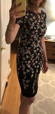 I wore this dress to the office as I had a nice lunch out and an evening event. With a jacket or sweater, it was perfect for the office. The sheer top makes it great for a nice event - especially during the holidays. I got a 4 to fit my 21 week pregnant bump (132 lbs) and it fit great! Fits well along the body and fitted in hips without being too tight. A friend said I should buy this dress. A great rental!