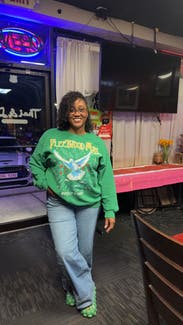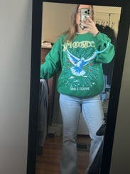 I love this color green. The sweatshirt is comfy. I wore a couple of times. I enjoyed wearing it.