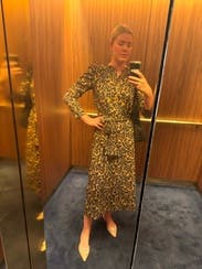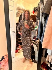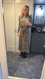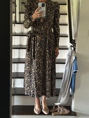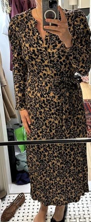 I loved this dress. Great print. Easy to dress up and down for date night, bunch, work. It was a bit big and I wish I sized down though