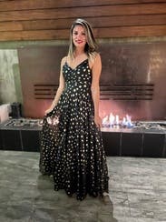 The dress is long and I had to wear heels to not walk on it. The straps were annoying and I tried to adjust them but it didn’t help. I wore a blazer since it was chilly. Even with the strap issue I still loved it and felt great wearing it.