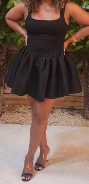 Comfortable and cute little black bubble dress. Lots of compliments. Fun to dance in. Watch out for gusts of wind.