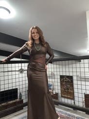 This dress is amazing! The rich chocolate brown was a perfect backdrop for my vintage turquoise jewelry. The cut really accentuates a ladies figure, I felt beautiful and confident.