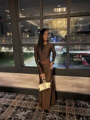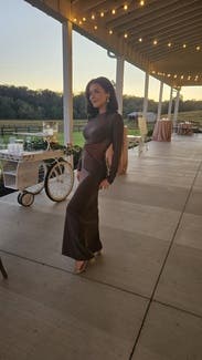 I wore this to a black tie wedding and it was absolutely stunning! The material is luxurious and the color is a gorgeous chocolate brown. I received SO many compliments throughout the night. Perfect for an elegant fall wedding! The small size fit me perfectly.