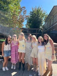 This is a cute little dress with some fun sleeves for flair, but the belt is pretty odd to figure out. Not sure I would rent again, but got plenty of compliments. Didn’t pull at the chest, which is always nice!