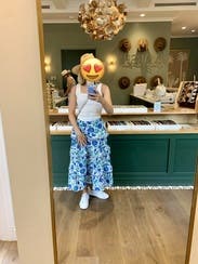 I received so many compliments around Dallas. I wore the matching shirt untucked and belted around my waist. I initially tucke din top but the drop waist with low first ruffle made it look odd to me. I am buying the set its too cute! For reference skirt size 10 top size 12