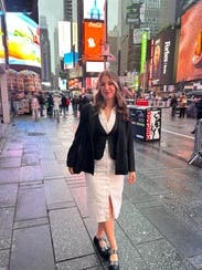 Wore this to a daytime event with a bold belt and sneaker to a bold belt and matching wedge. Very versatile.