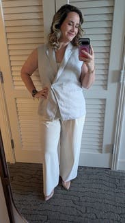 I felt very cool and chic in this vest. I wore it more casually to work and then dressed it up for an 8th grade promotion ceremony later that night. Perfect day to night piece. It's linen though, so of course it's going to show wrinkles pretty quickly.
