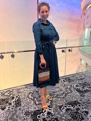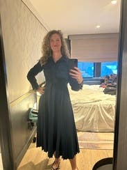 Got tons of compliments on this dress - very comfortable, great color, easy to wear and travel with. Highly recommend!