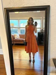 I'm a wine writer and I wore this during a wine trip to Campania, Italy. My favorite color is blue, but I started wearing orange recently since it's on the opposite side of the color wheel and compliments all my blue accessories! I got a lot of compliments and it's very comfortable...the top was a little bit tight but overall it fit really well. Going to wear it again before sending it back and I'm sad to part with it! **I've now rented this dress three times and I can't get enough of it...I should just buy it!