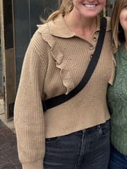 This sweater had some feminine ruffles that add a cute detail to a typical sweater. Would rent again!!