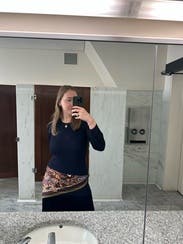 I loved wearing this to work, but it could be nice for an elevated dinner or event. I couldn’t really tell if the pleated skirt part was sheer..so I’m not sure if I showed my butt all day (I’m tall), but whatever!