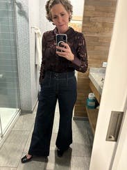 Wouldn't wear again. Too big in waist and too wide in legs. They look glittery in person