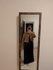 I’m glad someone mentioned the fabric having a little bit of sparkle. I would’ve preferred it without, but it’s not overpowering . Otherwise just a nice pair of dark jeans might do nice for a casual holiday party.