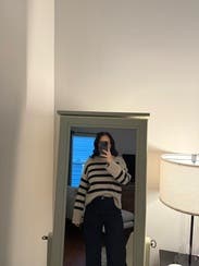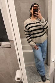 This isn't the most exciting sweater but it's well made and the black stripes add some interest. Definitely a good staple for the winter closet.
