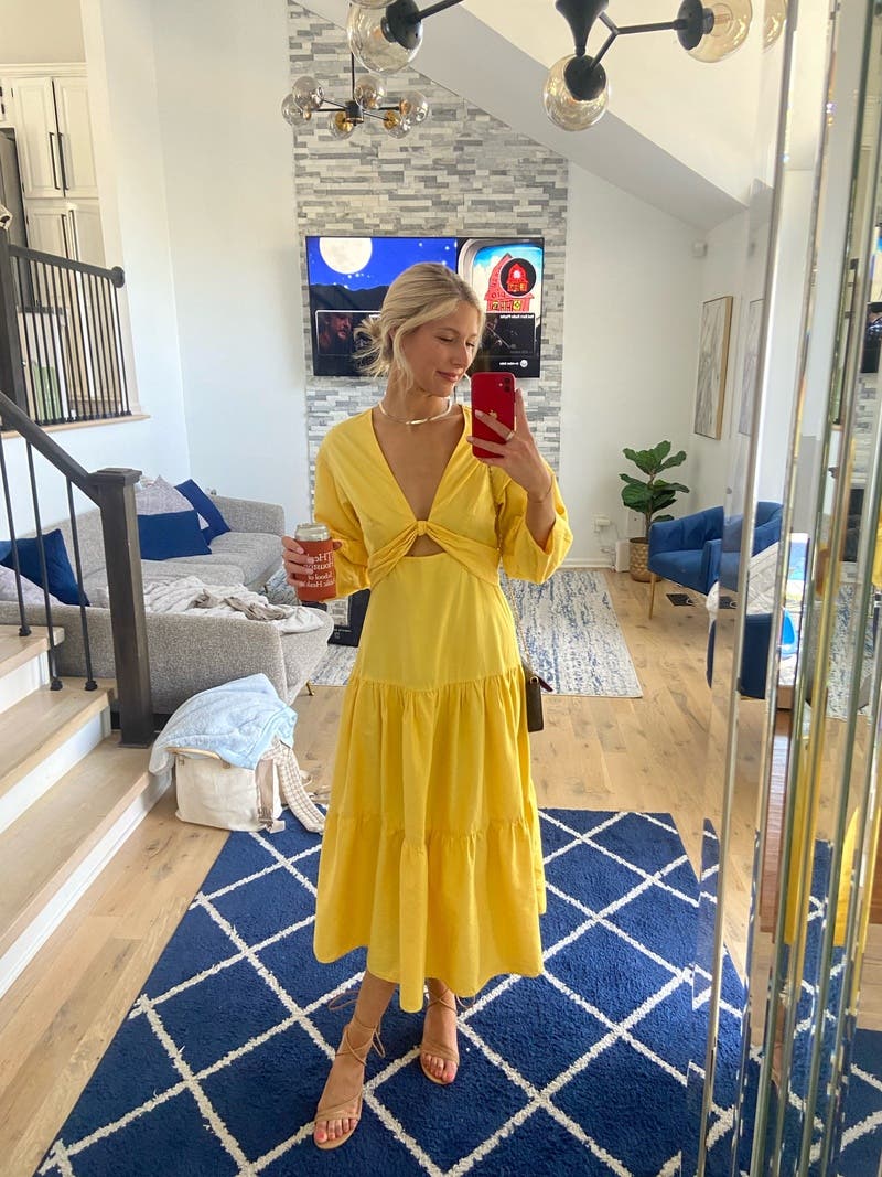 Yellow Twist Front Midi Dress