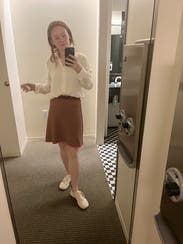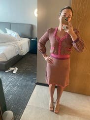 Loved this matching set! The fit was flattering and instantly made me feel confident and put-together. The fabric had a nice weight to it, so it looked polished without feeling heavy. The top and skirt paired perfectly together for a sleek, “girl boss” look, but could easily be worn as separates for more versatility. I received several compliments throughout the day and felt comfortable wearing it from morning meetings to evening plans. Would definitely rent again.
