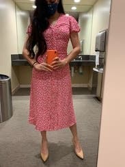This dress was perfect for a work conference. I wore it with sneakers and a white blazer. Only issue was the buttons slipped a couple times but luckily no one noticed!