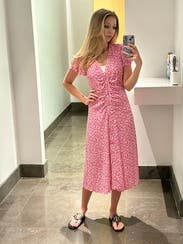 I feel like I might’ve liked this dress better if there was a smaller size, but this was loose on me, and it made the ruching at the waist look saggy. Not usually disappointed by DVF :(