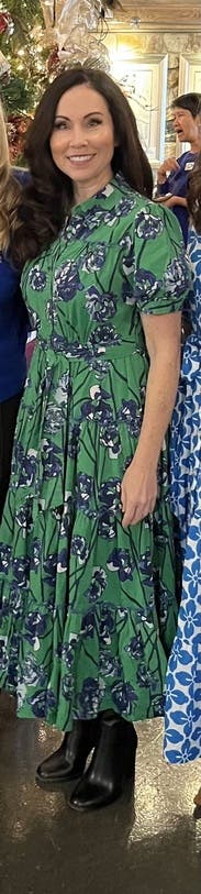 I had ACL surgery on April 1st—so full coverage over the knee for this Derby Week event was crucial! This dress was so comfortable and perfect for Derby Week at the Downs! I did have to steam it and iron the hem and the sash (the sash was folded over to oblivion), however—it was not quite ready to wear straight out of the bag. The effort was worth it, though!