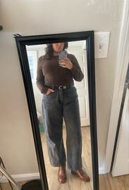 Runs true to size if not a little large. I’m typically a size 29-30, but per the reviews and the 12.5” rise I opted for the 28. A little snug, but still a decent fit, even with a mom pooch and a solid tush. At 5’7”, all my height is in my torso. My legs are more in line with someone who’s 5’4”. That being said, these jeans were too short for me. Would have been great with a pair of flats, but it’s boot season. They definitely came off more high-waters with my Chelseas. Overall, great pair of denim, very flattering in the back, though I don’t know I’d call them a true barrel leg. The shape is much less pronounced compared to others of the same style.