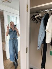Cute and casual denim dress; I didn't actually wear this piece – didn't feel like my style. And the small took some patience getting buttoned at the waist (like laying down to secure it), but I received NWT so maybe it needs some breaking in.