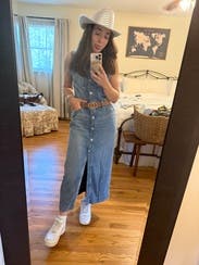 Rented for a wedding welcome reception with a “casual with a patriotic influence” dress code. I think this dress nailed the vibe. I loved how long it was, how comfortably soft the denim was. I sized up based on size charts I found online but bad call. The XL was definitely baggy. I’m 36/34/42 and I could’ve cinched the waist an inch.