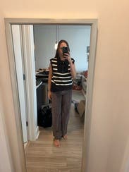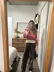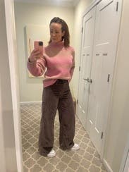 These are adorable cozy highrise pants. My only complaint is the length - with 2.5" heals I could wear them but otherwise I was tripping over them. Great neutral color went with every sweater I paired these with, and looked great with the more cropped style of sweater that is trending right now.