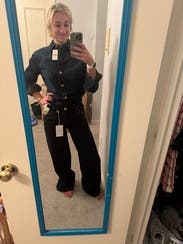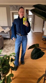 This was a swing and a miss. I was going for like a cute denim on denim elevated fall vibe. I had a belt and everything but I couldn’t share that photo with the world. I looked like Bella Hadid in this weird bull rider era that she’s in. Maybe it’s just me but I had high hopes with some pointed toe boots and a belt but alas I just looked like that one aunt that plays for the other team.