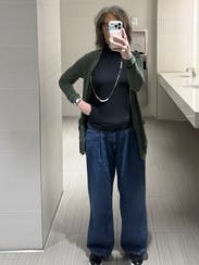 These trouser jeans are fab. I rented them in two sizes- though even the size down was very large. I’m a 25, sometimes 26 and the 24 were swimming on me. Great with a heel but are fairly lightweight- beware if you are wearing them in the dead of winter.