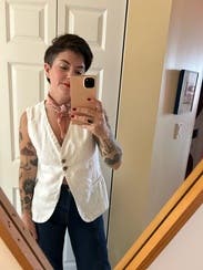 Loved this vest but couldn't figure out how to style it - I didn't quite feel confident enough to wear it with no bra, but I really, really loved it. Maybe for a smaller chested gal.