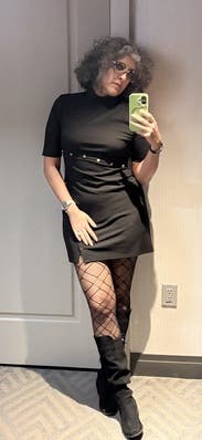 I had client meetings all day and an afternoon luncheon and this fit the bill for all of it! I got so many compliments! It was perfect with black sheer tights so it didn’t feel to short with pumps.