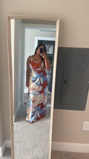 This dress is gorgeous - rent it as soon as you can. Wore for dinner in Mexico and got so many compliments. Soft silky material - fit super well.