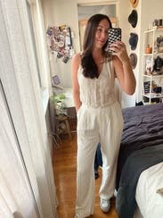 These were super comfy but unlined and extremely see through. I love a loose leg fit but these were huge in the waist and through the legs. Wouldn’t rent again