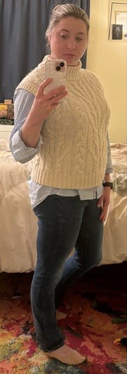 Got a bigger size because I wanted it oversized with my work pants. Super cute and so comfortable! Got so many compliments at the office!