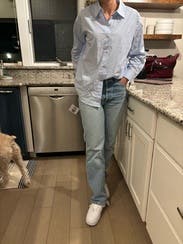 This is a great staple shirt, but not great with the large jeans look on me… sometimes trends collide so wore these with fitted jeans and it worked.