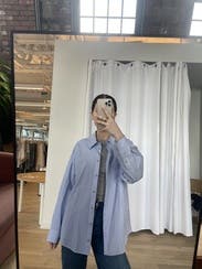 This DONNI striped shirt creates a relaxed yet chic vibe with its loose fit and classic blue stripes. Perfect for a casual day out, pair it with tailored trousers or layer over a slip dress for an effortless look.