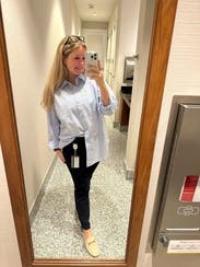 Wore this with trousers for a classic outfit. Great for tucking and fit true to size