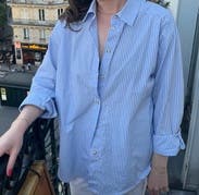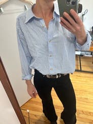 Quality cotton shirt. Love the classic stripe. Size up for more of an oversized look.