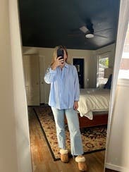 Team Meredith Blake. This Donni button down is a perfect classic piece. I leaned into the 90s with a half tuck and dad sneakers, but I’m dreaming of wearing as a beach cover up. Runs oversized- size down depending on how you want to style!