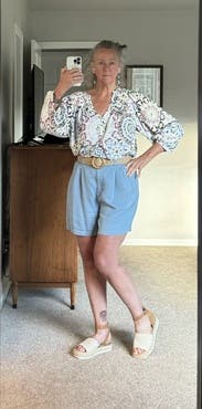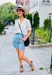 For this pear shaped/hour-glass gal, shorts are a tough sell, but when humid summer NYC days insist upon comfort, these shorts deliver style as well as comfort. They sit perfectly in my waist with lots of room for the bum and thighs. A soft fabric and a perfect color!