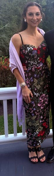 This dress was stunning. It got compliments all night long! Just a couple notes: the fabric is super thick, and with the embroidered flowers on top, no air flows through this dress. It’s not the one to rent for a hot day! Although visually stunning, this dress was definitely was snug and not the most comfortable. It took me a minute to zip it up. Sizing up was not an option because the cups were significantly larger in the next size up. That’s a common pear problem, though, so not shocking. All in all, would definitely rent again!