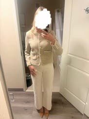 Wore this a few times for work and loved it. So classy but not too much for a business casual office. Also fully lined, so great for transition seasons -- actually warm. It does run small -- sized up and I'm glad I did.