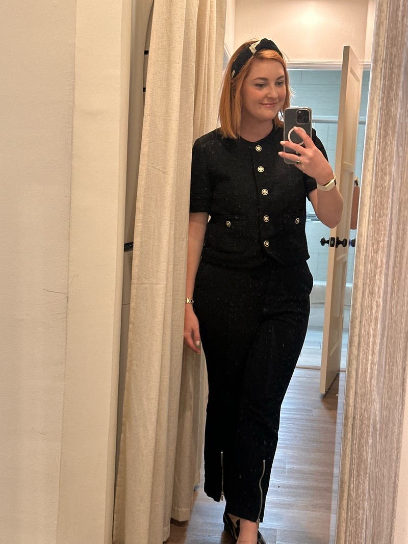 The DUNST Summer Tweed Jacket offers a breezy take on classic tailoring with its short sleeves and structured fit. Pair it with high-waisted trousers and loafers for a polished, warm-weather ensemble.