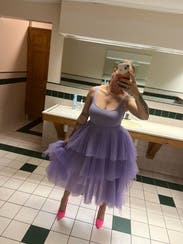 I wore this dress to the Eras Tour movie with a friend of mine and I loved it!! Very poofy, and I got so many complements as we walked through the mall to and from the theatre. The straps are a little long (maybe stretched out?) so if you have some kind of glue or tape to hold straps in place I highly recommend using it. I absolutely adored wearing this dress and I look forward to renting it again for another event!