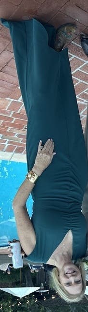 I rented for a holiday party and it was a great choice. Don’t usually wear a lot of green but it felt really festive. The cut is extremely flattering with the ruching and it was comfortable for dinner and dancing. The long back made it even more special. Will be renting again!