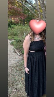 Perfect dress for a formal wedding- the sparkle and cut outs make it feel more special then your average black dress. I usually wear a small or medium in tops, medium in dresses, and medium/large in bottoms, but found that the small fit best for my frame for this style.