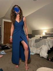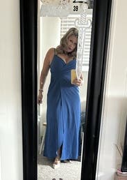 Loved the length and feel of this dress! It was long enough that it felt formal but the high slit gave it some fun. It was simple and elegant. I paired it with some nude heels.