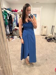 I needed a blue dress for a wedding and this one was such a subtly elevated look! It fit perfect, thick quality fabric to hide insecurities and breezy front hot 90 day outdoor wedding.