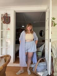 Can’t say enough about these amazing shorts. The tweed fabric is lovely, and they are lined with beautiful, silky material. Extra stretchy in the waist which is ideal considering this material. Want these!