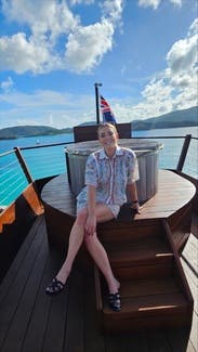 These En Saison Alaia Linen Shorts were adorable and matched the top perfectly. The medium fit just right — comfortable at the waist and a nice length for a relaxed resort look. I appreciated that they weren’t see-through thanks to the double-layered design, but the inner lining did tend to ride up a bit when walking or sitting, which made them a little fussy. Still, the overall look was worth it — easy, polished, and lightweight for a sunny day out on the water.